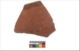 | Description / विवरण | Specimen of potsherd with black decorative geometric painting. Type Black on Red Ware . |