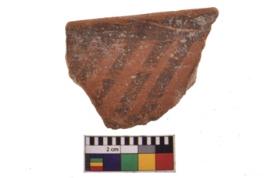 | Description / विवरण | Specimen of black on red ware with decorative geometric Outcurved lines painting. |