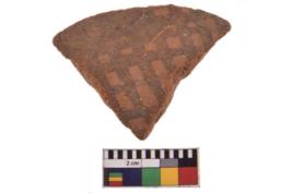 | Description / विवरण | Specimen of black on red ware with decorative geometric Two horizontal bands containing criss-cross pattern painting. |