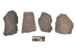 | Description / विवरण | There are n-4 of utilized flake cores. There are multidirectional irregular dominant scar pattern on both dorsal and ventral face of the cores. |