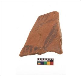 | Description / विवरण | Specimen of potsherd with black decorative geometric painting. Type Black on Red Ware . |