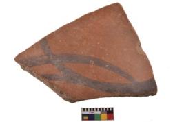 | Description / विवरण | Specimen of black on red ware with decorative geometric Outcurved lines painting. |
