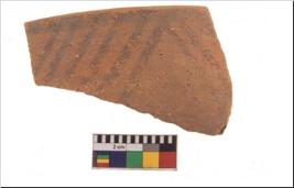 | Description / विवरण | Specimen of potsherd with black decorative geometric painting. Type Black on Red Ware . |