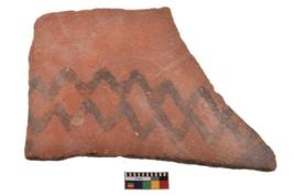 | Description / विवरण | Specimen of black on red ware with decorative geometric A set of two zigzag band painting. |