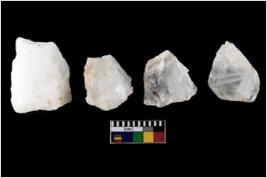 | Description / विवरण | Specimen of cores with weathered cortex and several broad fluted marks. Some of them are tapering at one end. |
