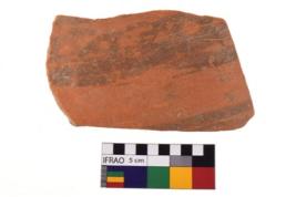 | Description / विवरण | A specimen of a potsherd. It is reddish in colour with black decorative geometric painting on it. |