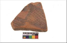 | Description / विवरण | Specimen of potsherd with black decorative geometric painting. Type Black on Red Ware . |