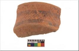 | Description / विवरण | Specimen of potsherd with black decorative geometric painting. Type Black on Red Ware . |