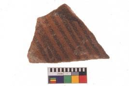 | Description / विवरण | Specimen of potsherd with decorative geometric Linear painting, Type Black on Red Ware . |