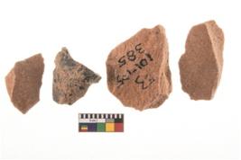 | Description / विवरण | It made up of a short flakes with sides trimmed. Marks of secondary flaking are present on the both the faces. It rained pebbly cortex on one side and irregular thin edge on the other. The dorsal is relatively flat. A patch of cortex near the section which is slanting to the dorsal .It is sub rectangular in shaped. |