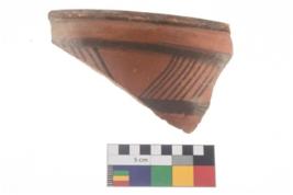 | Description / विवरण | Specimen of potsherd with black decorative geometric painting . |