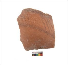 | Description / विवरण | Specimen of potsherd with black decorative geometric painting. Type Black on Red Ware . |