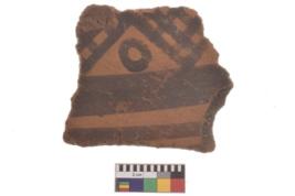 | Description / विवरण | Specimen of black on red ware with decorative geometric Latticed diamonds with empty circles in between painting. |