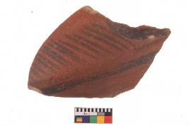 | Description / विवरण | Specimen of potsherd with decorative geometric Linear painting, Type Black on Red Ware . |