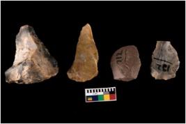 | Description / विवरण | There are n-4 intact flake cores. There are multi directional irregular scar pattern on both dorsal and ventral face of the flake cores. |