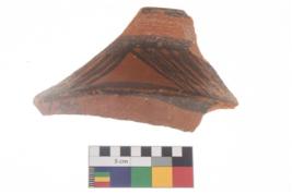 | Description / विवरण | Specimen of potsherd with black decorative geometric painting . |