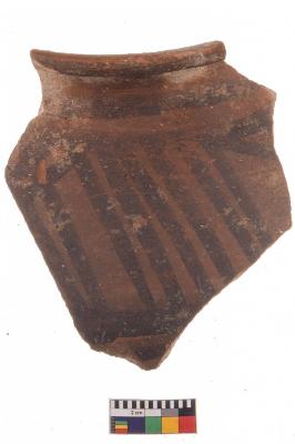 | Description / विवरण | Specimen of potsherd with decorative geometric Linear painting, Type Black on Red Ware . |