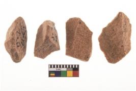 | Description / विवरण | It made up of a short flakes with sides trimmed. Marks of secondary flaking are present on the both the faces. It rained pebbly cortex on one side and irregular thin edge on the other. The dorsal is relatively flat. A patch of cortex near the section which is slanting to the dorsal .It is sub rectangular in shaped. |