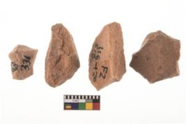 | Description / विवरण | It made up of a short flakes with sides trimmed. Marks of secondary flaking are present on the both the faces. It rained pebbly cortex on one side and irregular thin edge on the other. The dorsal is relatively flat. A patch of cortex near the section which is slanting to the dorsal .It is sub rectangular in shaped. |