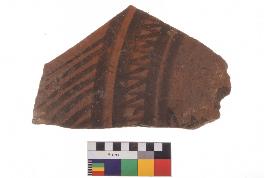 | Description / विवरण | Specimen of potsherd with decorative geometric Linear painting, Type Black on Red Ware . |