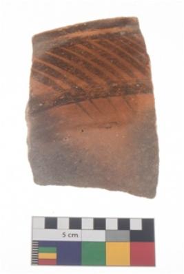 | Description / विवरण | Specimen of potsherd with black decorative geometric painting . |