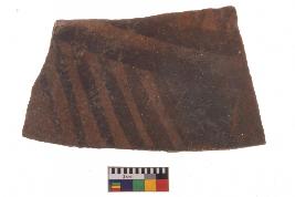 | Description / विवरण | Specimen of potsherd with decorative geometric Linear painting, Type Black on Red Ware . |