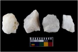 | Description / विवरण | There are n-4 of intact flake cores made up of Quartz. Some of them have bulge of percussion and some are flat flakes. |
