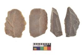 | Description / विवरण | There are n-4 of utilized flake cores. There are multidirectional irregular dominant scar pattern on both dorsal and ventral face of the cores. |