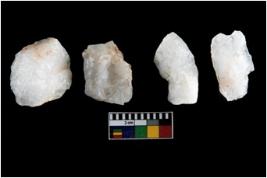 | Description / विवरण | Specimen of cores with weathered cortex and several broad fluted marks. Some of them are tapering at one end. |