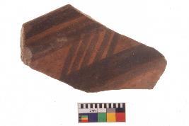| Description / विवरण | Specimen of potsherd with decorative geometric Linear painting, Type Black on Red Ware . |