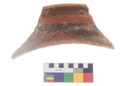 | Description / विवरण | .Specimen of potsherd with black decorative geometric painting . |