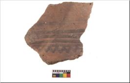 | Description / विवरण | Specimen of potsherd with black decorative geometric painting. Type Black on Red Ware . |