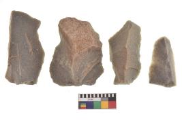 | Description / विवरण | There are n-4 of utilized flake cores. There are multidirectional irregular dominant scar pattern on both dorsal and ventral face of the cores. |