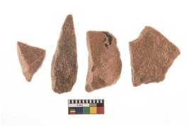 | Description / विवरण | It made up of a short flakes with sides trimmed. Marks of secondary flaking are present on the both the faces. It rained pebbly cortex on one side and irregular thin edge on the other. The dorsal is relatively flat. A patch of cortex near the section which is slanting to the dorsal .It is sub rectangular in shaped. |