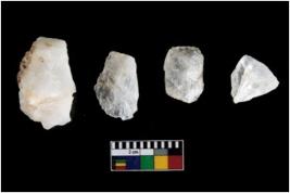 | Description / विवरण | Specimen of cores with weathered cortex and several broad fluted marks. Some of them are tapering at one end. |