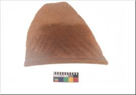 | Description / विवरण | Specimen of potsherd with black decorative geometric painting . |
