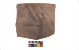 | Description / विवरण | Specimen of potsherd with black decorative geometric painting. Type Black on Red Ware . |