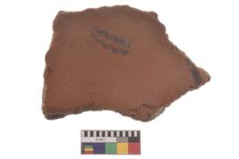 | Description / विवरण | Specimen of black on red ware with decorative geometric Two latticed bands painting. |