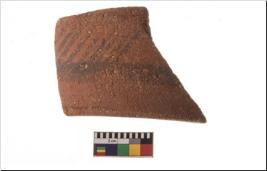 | Description / विवरण | Specimen of potsherd with black decorative geometric painting. Type Black on Red Ware . |
