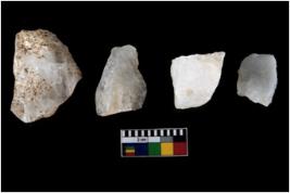 | Description / विवरण | Specimen of cores with weathered cortex and several broad fluted marks. Some of them are tapering at one end. |