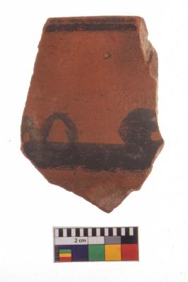 | Description / विवरण | Specimen of potsherd with decorative painting, Type Black on Red Ware . |