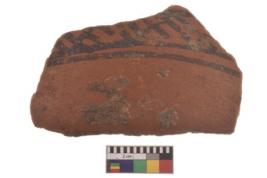 | Description / विवरण | Specimen of black on red ware with decorative geometric Oblique lines set in two horizontal bands painting. |