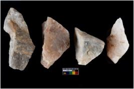 | Description / विवरण | There are n-4 of intact utilized flakes made up of Quartz. Some of them have bulge of percussion and some are flat flakes. |