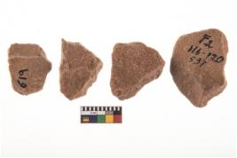 | Description / विवरण | It made up of a short flakes with sides trimmed. Marks of secondary flaking are present on the both the faces. It rained pebbly cortex on one side and irregular thin edge on the other. The dorsal is relatively flat. A patch of cortex near the section which is slanting to the dorsal .It is sub rectangular in shaped. |