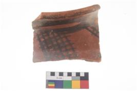 | Description / विवरण | Specimen of potsherd with black decorative geometric Net pattern painting . |