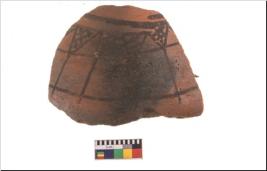 | Description / विवरण | Specimen of potsherd with black decorative geometric painting. Type Black on Red Ware . |