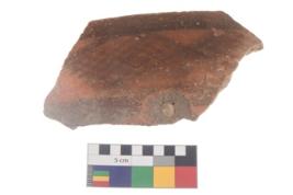 | Description / विवरण | Specimen of potsherd with black decorative geometric painting . |