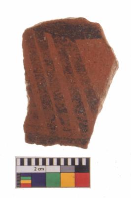 | Description / विवरण | Specimen of potsherd with decorative geometric Linear painting, Type Black on Red Ware . |