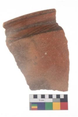 | Description / विवरण | Specimen of potsherd with black decorative linear painting . |