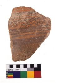 | Description / विवरण | A specimen of a potsherd. It is reddish in colour with black decorative geometric painting on it. |